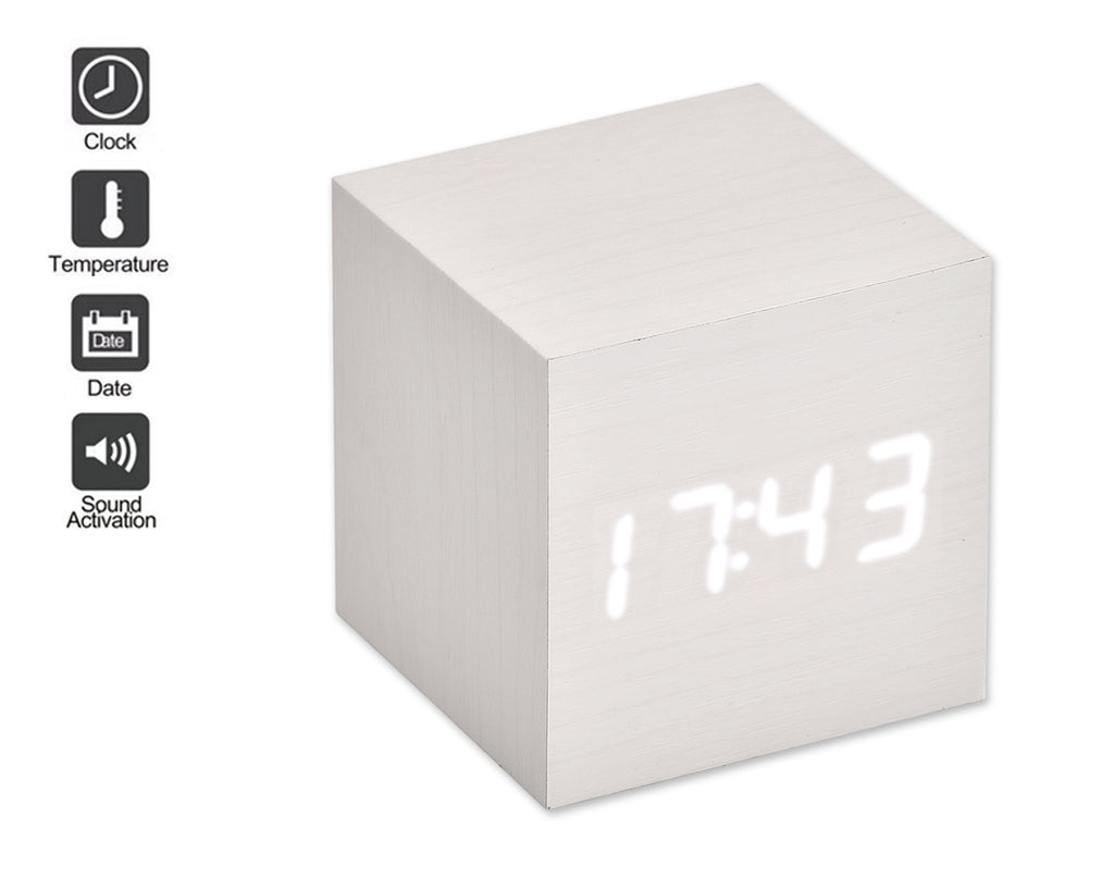 Wood Cube LED Alarm Clock with Date Time Temperature