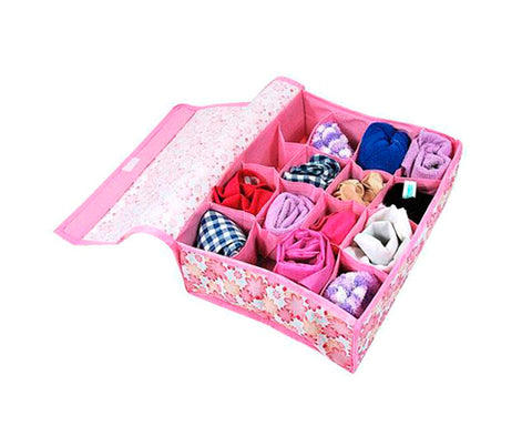 16 Pockets Collapsible Fabric Flower Underwear Storage Box - Pink