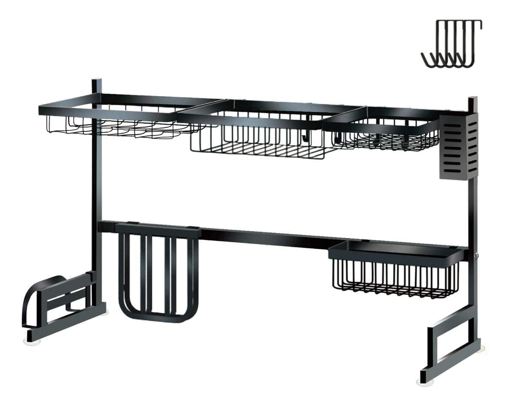 Dish Dying Rack 33.5 Inch Over Sink Storage Counter Organizer - Black