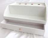 PU Leather Wooden Desk Decor Cosmetic Storage Box with Drawer - White